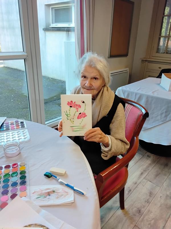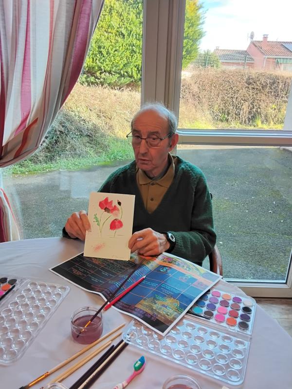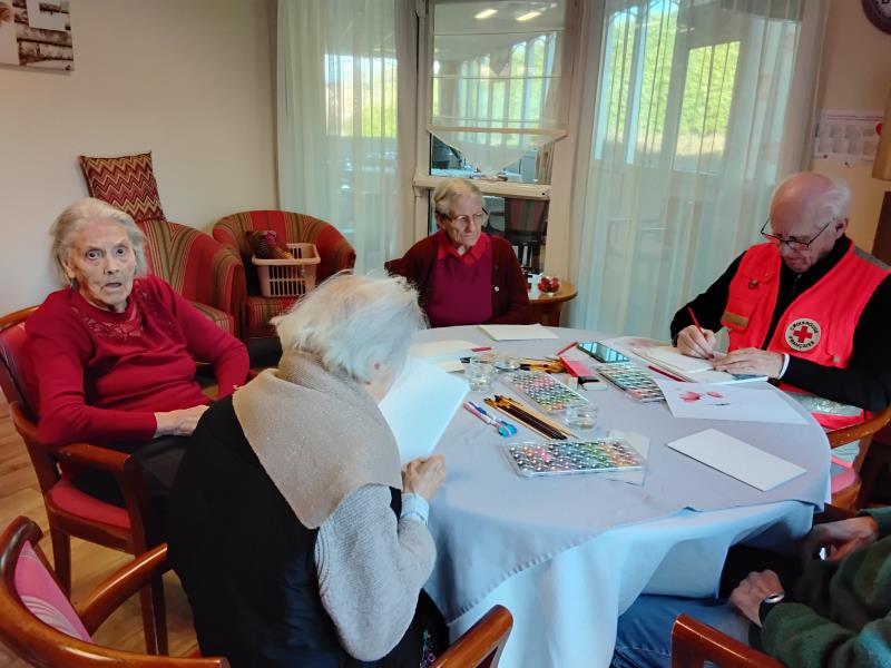 Résidence Les Lis > Actualités > Aquarelle Aquarelle Publiée le 13/01/2026 Une fois par mois il y a un bénévole de la Croix rouge qui vient faire un atelier aquarelle. Chaque résident repart avec son œuvre.