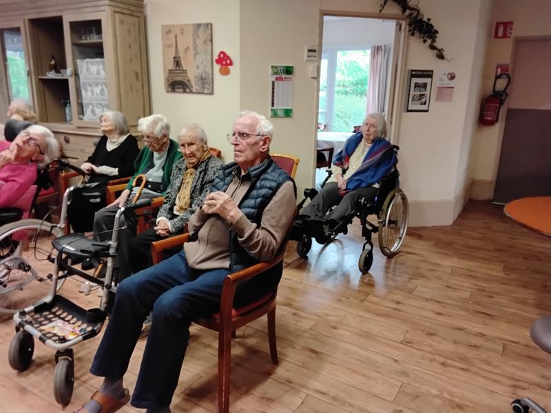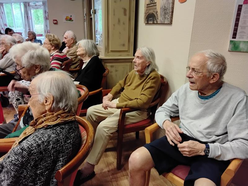 Ce fut une heure magique suspendue dans le temps pour nos résidents qui frappaient dans leurs mains et reprenaient les refrains.