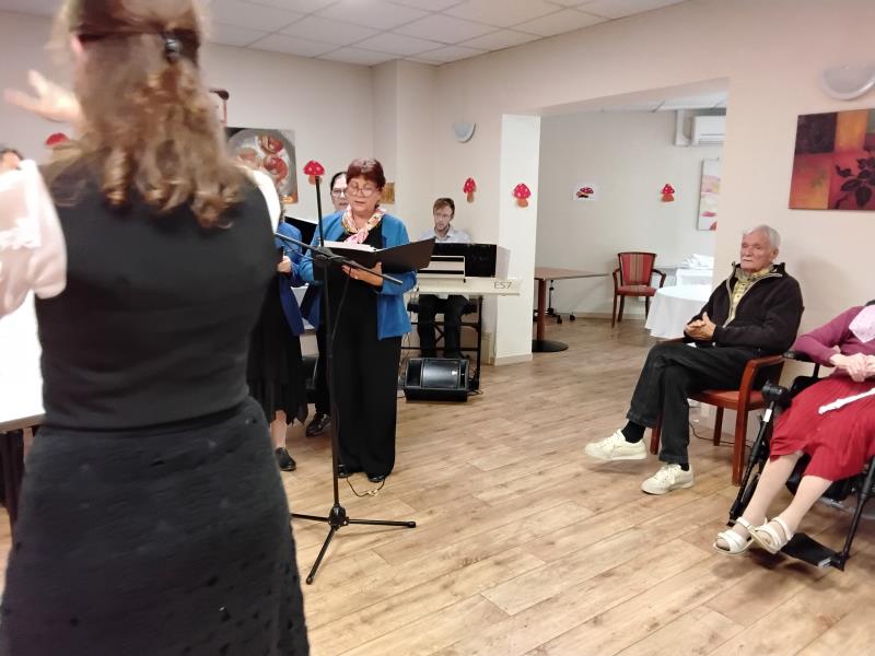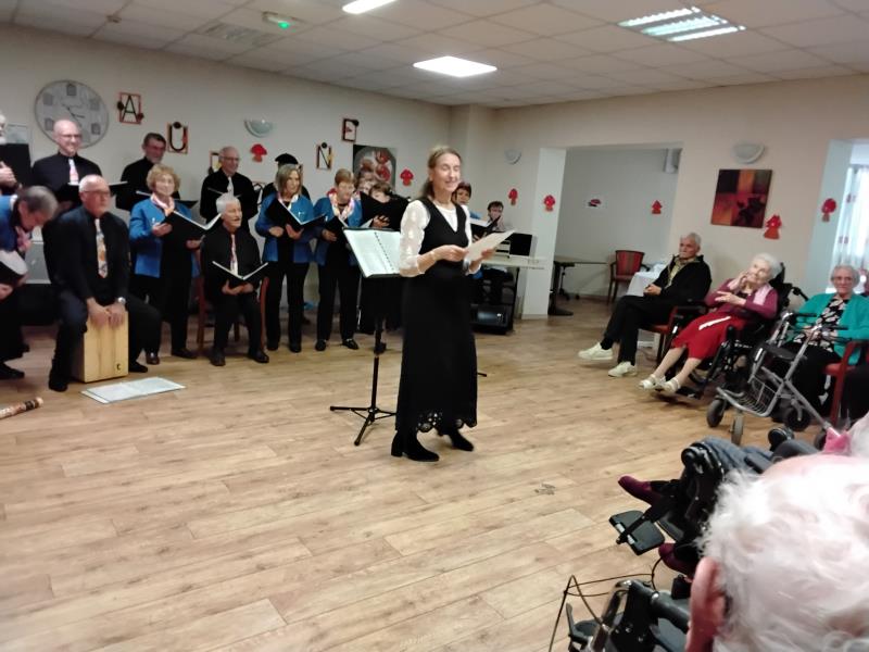 Vendredi, la chorale "le choeur des fontaines" menée de main de maître par la fille d'une de nos résidentes qui est venue nous interpréter son répertoire.