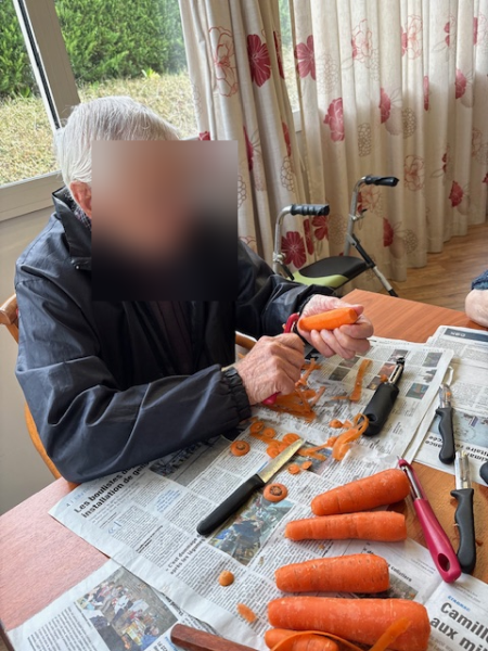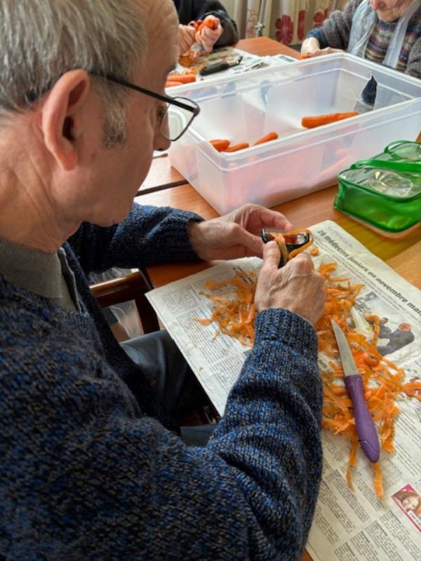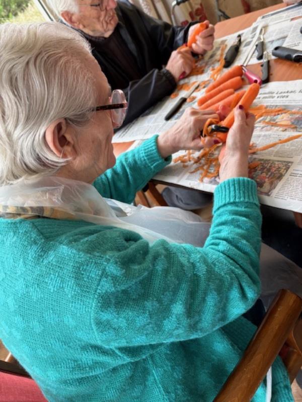 Ce matin , les résidents ont participé à un atelier épluchage de légumes .