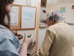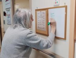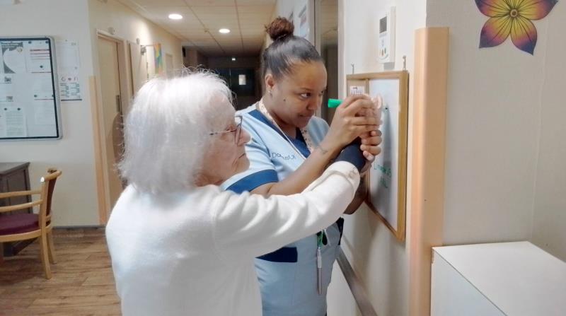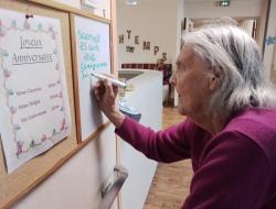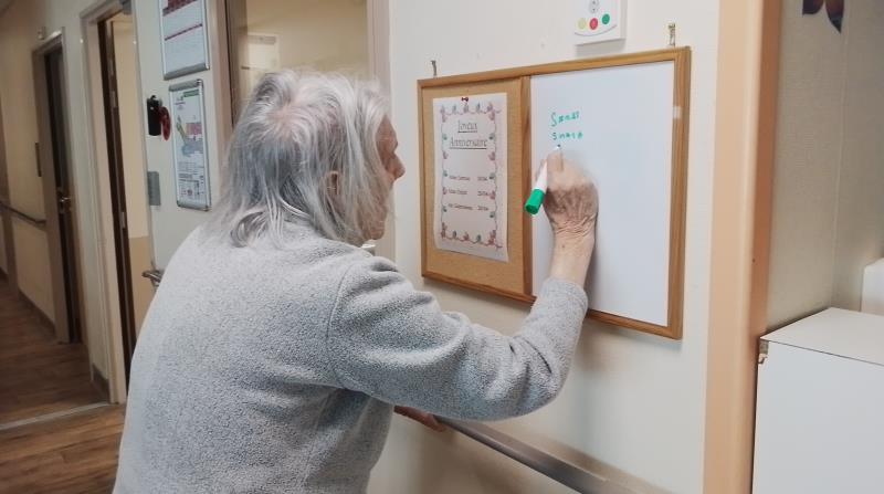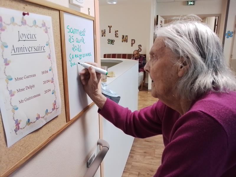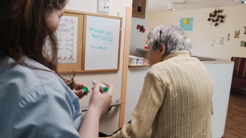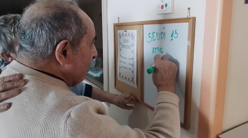 Chaque jour, les résidents de l’unité protégée prennent le temps d’écrire la date du jour, accompagnés par les soignants.